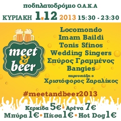 Το Arts and the City δίνει τη δυνατότητα σε 5 τυχερούς να κερδίσουν από μία διπλή πρόσκληση για το «Meet and Beer» που θα πραγματοποιηθεί την Κυριακή 1 Δεκεμβρίου στο ΟΑΚΑ.