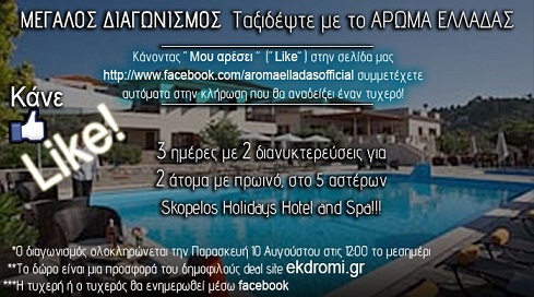 Η εκπομπή Άρωμα Ελλάδας διοργανώνει διαγωνισμό και σας δίνει τη δυνατότητα να κερδίσετε ένα 3ήμερο στη μαγευτική Σκόπελο.