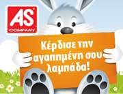 Και φέτος το Πάσχα η AS Company φέρνει τις πιο ωραίες, τις πιο διασκεδαστικές, τις πιο όμορφες λαμπάδες με τους αγαπημένους σας ήρωες. Πάρτε μέρος στο μεγάλο διαγωνισμό μας, ψηφίστε την αγαπημένη σας λαμπάδα (σημειώστε τον κωδικό που υπάρχει στη φωτογραφία στο Album «Λαμπάδες AS Company Πάσχα 2012») και μπορεί να την κερδίσετε. Τα δώρα είναι πέντε λαμπάδες για αγόρια και πέντε για κορίτσια.