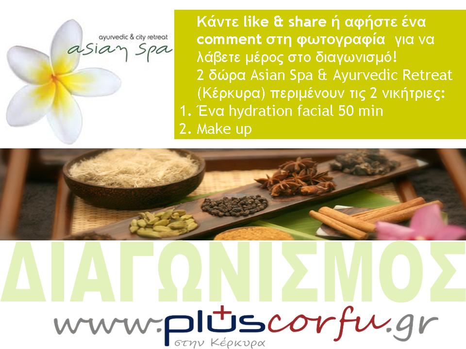H Ζιζή Πατέλη και το Asian Spa στην Κέρκυρα διοργανώνουν διαγωνισμό και δίνουν τη δυνατότητα σε 2 τυχερές να κερδίσουν η πρώτη ένα hydration facial 50 λεπτών και η δεύτερη ένα make up.