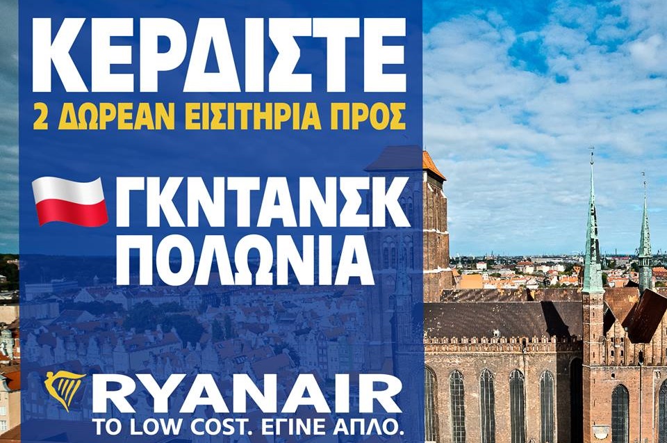 H σελίδα Athens International Airport διοργανώνει διαγωνισμό και σας δίνει τη δυνατότητα να κερδίσετε 2 αεροπορικά εισιτήρια από τη Ryanair για το Γκντανσκ!