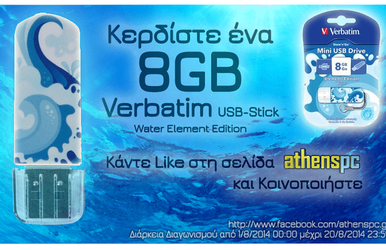 Κάθε μήνα και καινούργιος διαγωνισμός από την AthencPC! Για τον Αύγουστο, δώρο ένα 8GB USB STICK VERBATIM Water Edition!