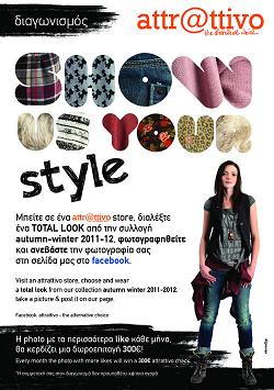 Μπείτε μέσα σ’ ένα attrattivo store, διαλέξτε ένα total look από την συλλογή autumn-winter 2011 – 2012, φωτογραφηθείτε και «ανεβάστε» την φωτογραφία σας στην σελίδα στο facebook. Η photo με τα περισσότερα “like” κάθε μήνα, θα κερδίζει μια δωροεπιταγή 300€.