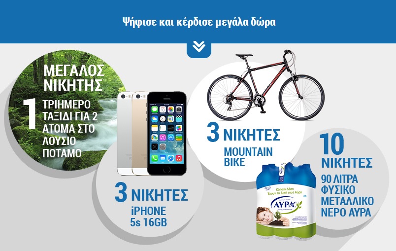 Διαγωνισμός με δώρο ταξίδι στον ποταμό Λούσιο, 3 ποδήλατα, 3 iphone 5 και φυσικό μεταλλικό νερό ΑΥΡΑ