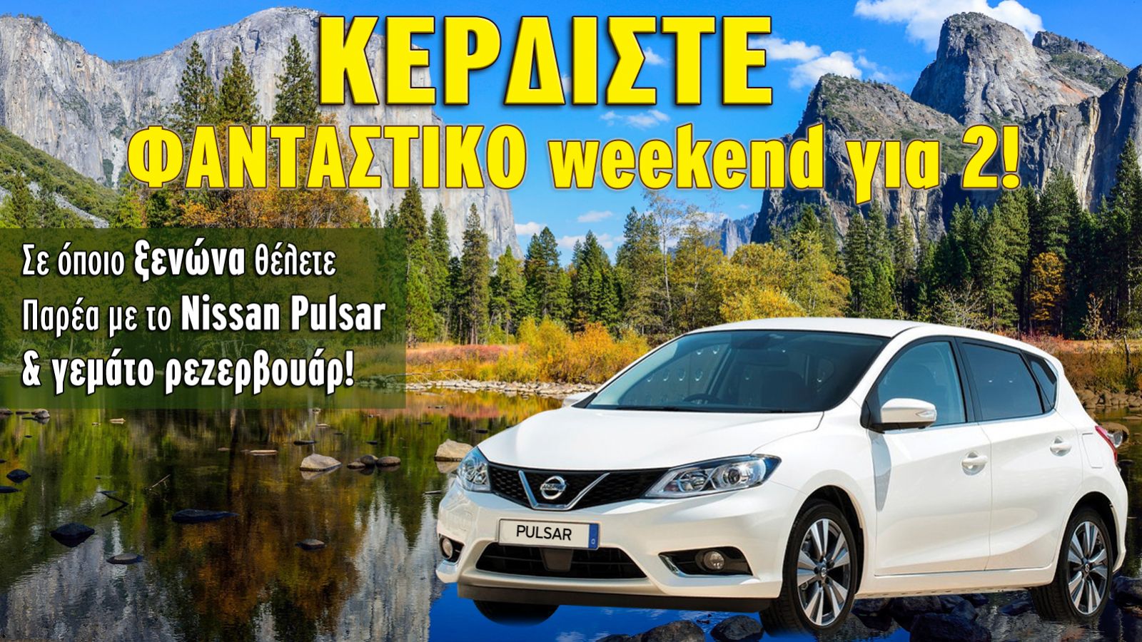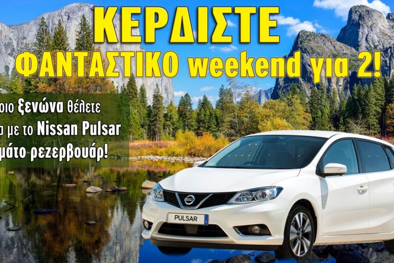 To Autotriti διοργανώνει διαγωνισμό και σας δίνει τη δυνατότητα να κερδίσετε ένα φανταστικό weekend για δύο παρέα το Nissan Pulsar, με γεμάτο ρεζερβουάρ!