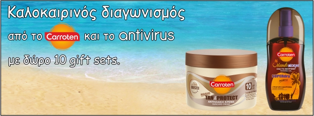 Το Carroten και το περιοδικό Antivirus σας δίνουν την δυνατότητα να κερδίσετε 10 gift sets με αντηλιακά προϊόντα για να αποκτήσετε ακαταμάχητο χρώμα, με την ασφάλεια που χρειάζεστε ώστε το καλοκαίρι μας να είναι μαγικό.