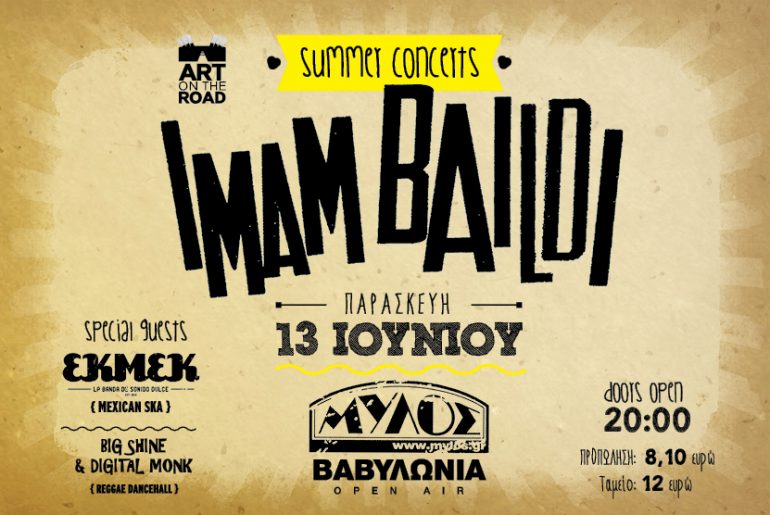 Το περιοδικό Antivirus σου δίνει την δυνατότητα να κερδίσεις μία από τις δύο διπλές προσκλήσεις για τη συναυλία τωνIMAM BAILDI στο Μύλος Open Air (Βαβυλωνία) στην Θεσσαλονίκη τη Παρασκευή 13 Ιουνίου.