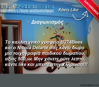 Το καλλιτεχνικό γραφείο B274BEES και ο Nicola Delarte σας δίνουν τη δυνατότητα να κερδίσετε μία τοιχογραφία παιδικού δωματίου αξίας 500€.