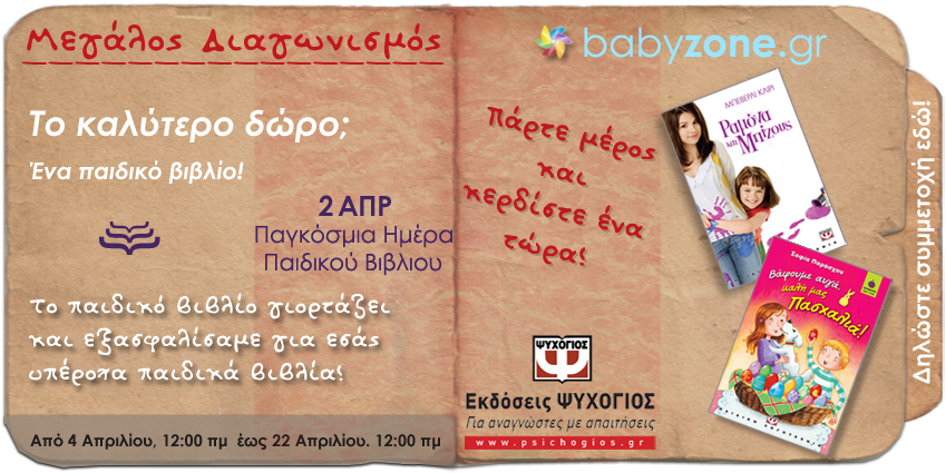 Το babyzone.gr διοργανώνει διαγωνισμό και σας δίνει τη δυνατότητα να κερδίσετε συνολικά 30 παιδικά βιβλία!