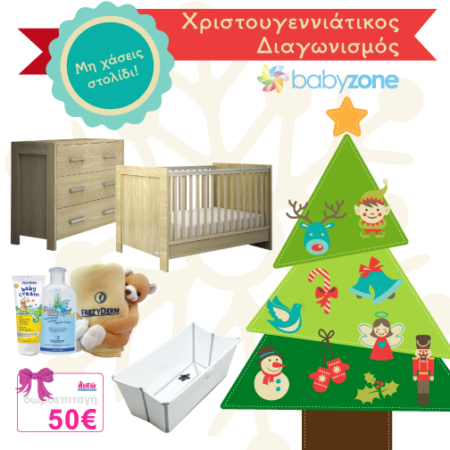 Το babyzone.gr διοργανώνει διαγωνισμό και σας δίνει τη δυνατότητα να κερδίσετε 1 κρεβάτι και 1 σιφονιέρα Nature Casababy αξίας 816€, 5 σετ βρεφικής περιποίησης Frezyderm αξίας 40€ το σετ, 4 Stokke Flexi Bath αξίας 39€/τμχ και 2 δωροεπιταγές από τα Βρεφικά Πολυκαταστήματα Λητώ αξίας 50€ έκαστη!