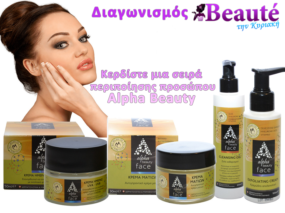 Η σελίδα Beaute την Κυριακή διοργανώνει διαγωνισμό και σας δίνει τη δυνατότητα να κερδίσετε μία σειρά περιποίησης προσώπου Alpha Beauty που περιλαμβάνει: