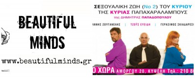 To Beautifulminds.gr διοργανώνει διαγωνισμό και σας δίνει τη δυνατότητα να κερδίσετε 2 διπλές προσκλήσεις για την παράσταση “Η Σεξουαλική ζωή του Κου & της Κας Παπαχαραλάμπους” στο Θέατρο “Χώρα” Αμοργού 20, Κυψέλη για την Πέμπτη 25/4.
