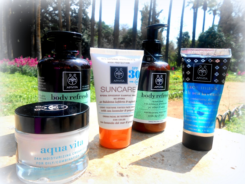 Μια ενυδατική κρέμα – gel 24ωρης ενυδάτωσης Aqua Vita με λυγαριά και πρόπολη, μια αντηλιακή κρέμα προσώπου Suncare ελαφριάς υφής με χρώμα και δείκτη προστασίας 30 και μια face mask μάσκα ενυδάτωσης και δροσιάς με θαλάσσια λεβάντα.