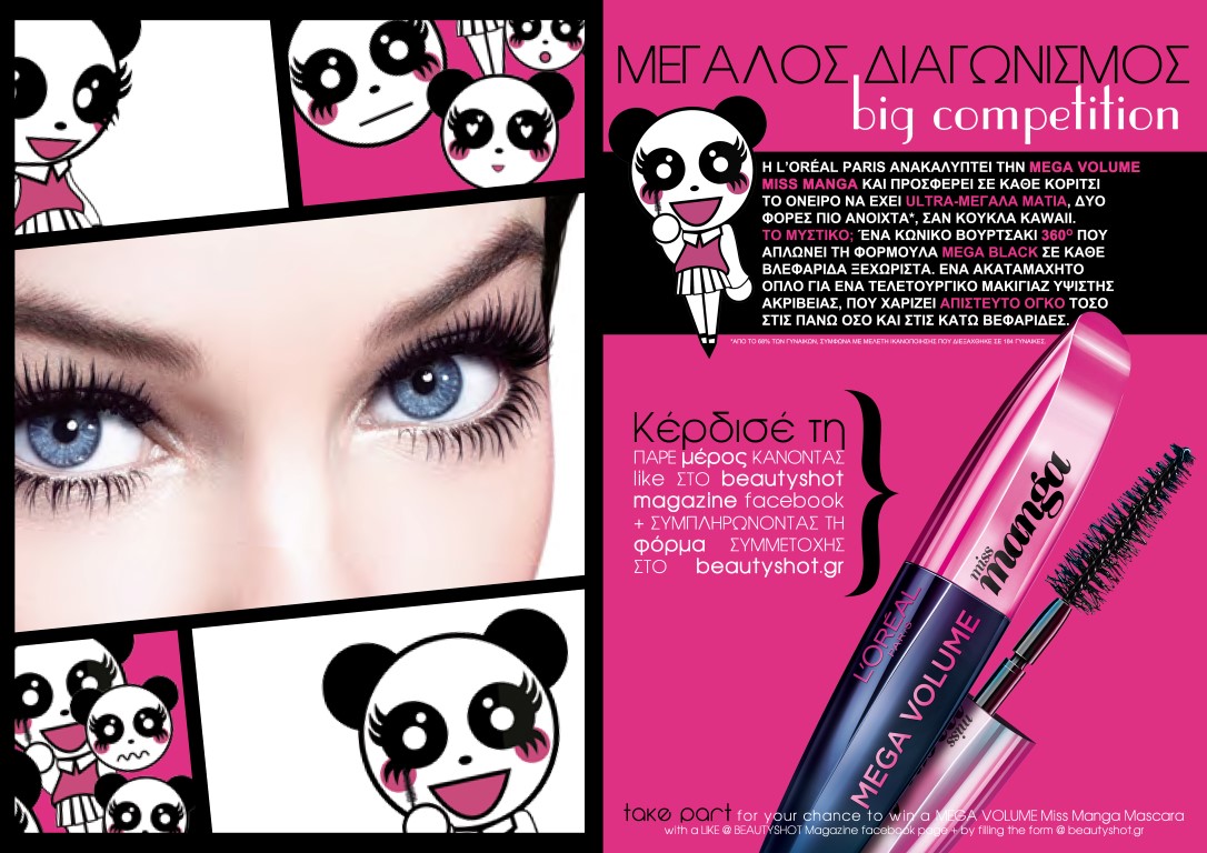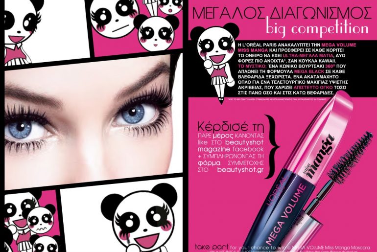 Μεγάλος Διαγωνισμός MissManga! Η L’Oreal Paris ανακαλύπτει την MEGA VOLUME MISS MANGA και προσφέρει σε κάθε κορίτσι το όνειρο να έχει Ultra-Μεγάλα μάτια, δύο φορές πιο ανοιχτά, σαν κούκλα Kawaii. Κέρδισέ τη!