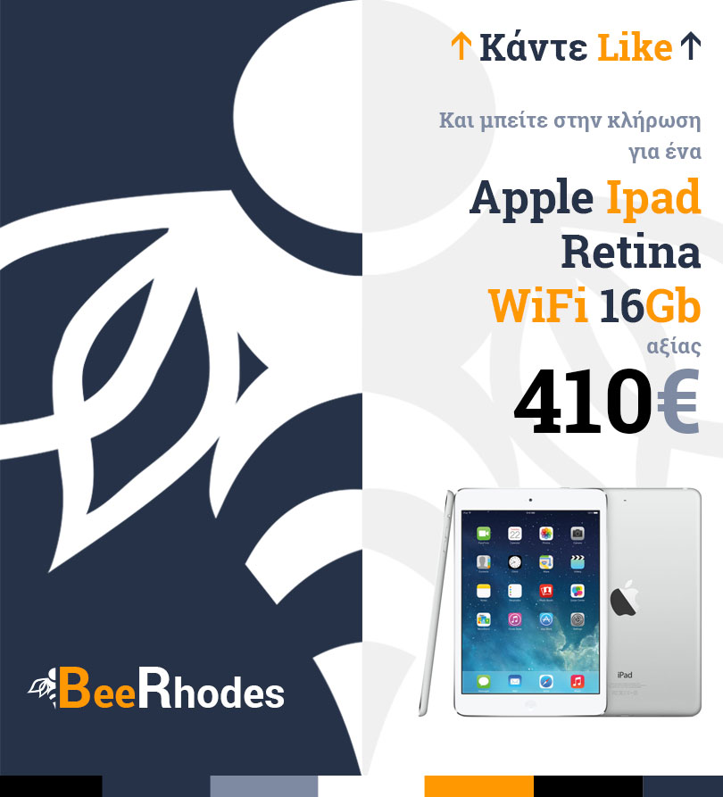 Ο Beerhodes.gr – Επαγγελματικός Οδηγός Ρόδου διοργανώνει διαγωνισμό και σας δίνει τη δυνατότητα να κερδίσετε 1 Apple 2 Ipad Retina Wifi 16Gb αξίας 410€!