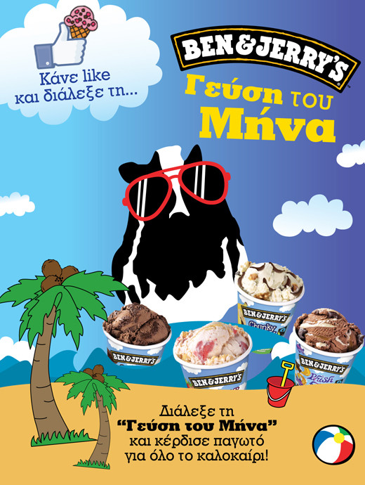 Τα Ben & Jerry’s διοργανώνουν διαγωνισμό στο facebook, σας καλούν κα διαλέξετε τη “Γεύση του Μήνα” και σας δίνουν την ευκαιρία να κερδίσετε δωρεάν παγωτό για όλο το καλοκαίρι!
