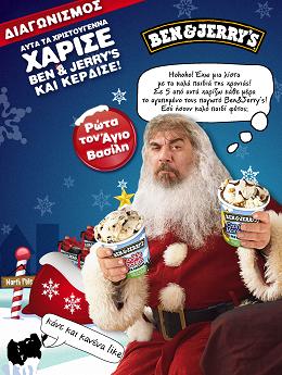 Ο Αγιος Βασίλης έχει μια λίστα με τα καλά παιδιά της χρονιάς. Μπείτε τώρα στην εφαρμογή της σελίδας Ben & Jerry’s στο facebook και ρωτήστε τον αν είστε στη λίστα του! Κάθε μέρα πέντε (5) τυχεροί θα κερδίζουν 4 μπάλες παγωτού Ben&Jerry’s.