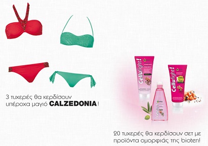 Η Bioten διοργανώνει διαγωνισμό και δίνει τη δυνατότητα σε 3 νικητές να κερδίσουν από ένα (1) μαγιό Calzedonia (ολόσωμο ή σετ 2 τεμαχίων) αξίας έως 80€ και σε 20 ακόμα να κερδίσουν από ένα σετ προϊόντων BIOTEN- Cellufight το οποίο θα αποτελείται από: Κρέμα μασάζ κατά της κυτταρίτιδας (200ml), απολεπιστική κρέμα ντούς (200ml) και λάδι μασάζ κατά της κυτταρίτιδας (200ml).