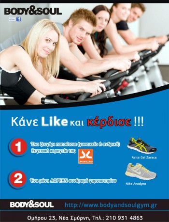 Η Body & Soul διοργανώνει διαγωνισμό όπου ο πρώτος νικητής κερδίζει ένα ζευγάρι αθλητικά παπούτσια από την Sportland (ανδρικό ή γυναικείο) και ο δεύτερος ένα μήνα δωρεάν συνδρομή γυμναστηρίου.