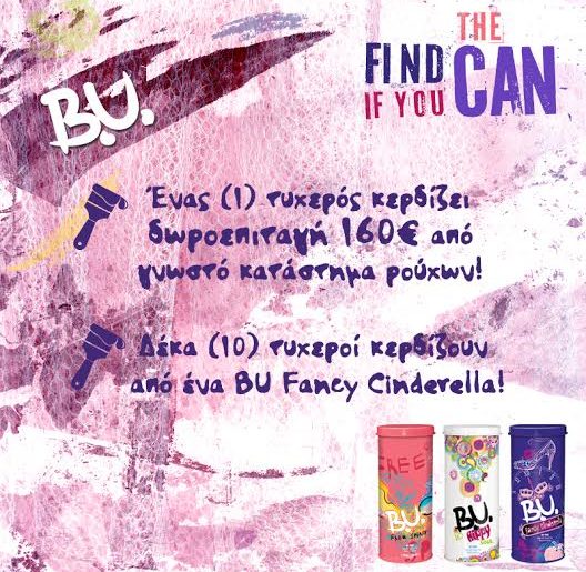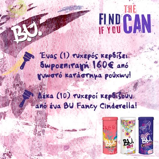 Η σελίδα BU Greece διοργανώνει διαγωνισμό και σας δίνει τη δυνατότητα να κερδίσετε 1 δωροεπιταγή αξίας 160€, από γνωστή αλυσίδα καταστημάτων ρούχων και 10 αρώματα B.U. Fancy Cinderella!