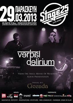 Το Bullmp.com εξασφάλισε για τους αναγνώστες του 5 διπλές προσκλήσεις για τo Live των Verbal Delirium για την παρουσίαση του νέου τους album στο Stage25 (Αισχύλου 25, Περιστέρι) για την Παρασκευή 29 Μαρτίου 2013 στις 22:30.