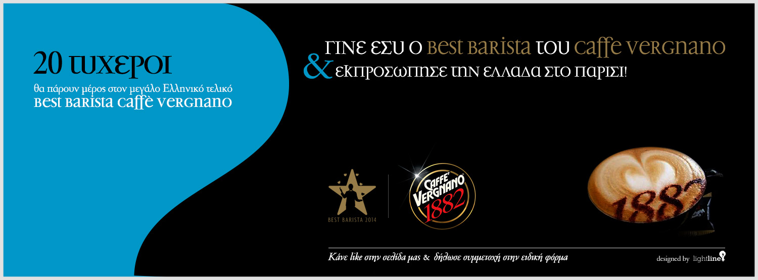 Η σελίδα café vergniano διοργανώνει διαγωνισμό και δίνει τη δυνατότητα σε 20 τυχερούς baristas να πάρουν μέρος στο Μεγάλο Ελληνικό Τελικό του “Best Barista”, όπου ένας τυχερός θα εκπροσωπήσει την Ελλάδα στον τελικό στο Παρίσι.