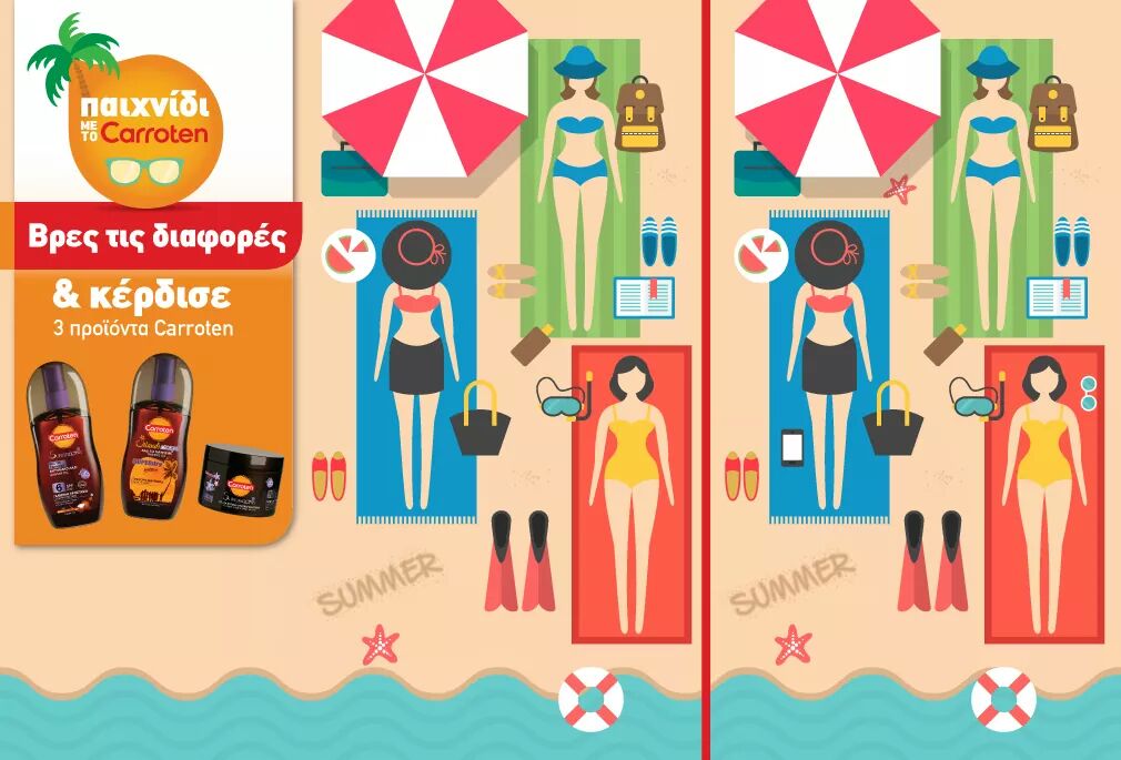 6 νικητές μετά από κλήρωση θα κερδίσουν ένα σετ με: 1 Carroten Sunsations intensive exotic tanning gel, 1 Carroten Sunsations Suntan Oil και 1 Islands Escape Super dry oil. Παιχνίδι με το Carroten.