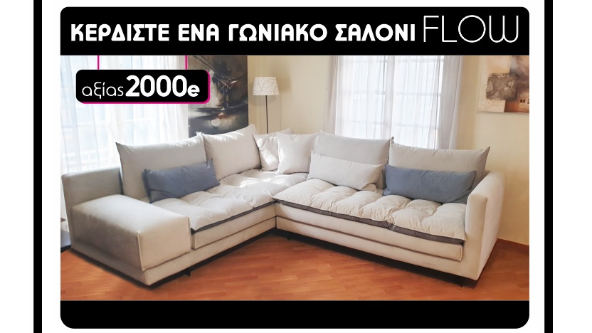 H εταιρεία Casatlantis Έπιπλα διοργανώνει διαγωνισμό και σας δίνει τη δυνατότητα να κερδίσετε έναν γωνιακό καναπέ Flow σε γκρι χρώμα με ύφασμα αδιάβροχο και αλέκιαστο διαστάσεων 2.80 μ. επι 2.40 μ, αξίας 2000€!