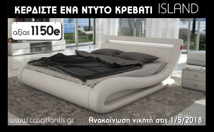 H εταιρεία Casatlantis Έπιπλα διοργανώνει διαγωνισμό και σας δίνει τη δυνατότητα να κερδίσετε ένα κρεβάτι Island λευκό eco leather, άξιας 1150€!