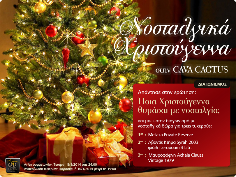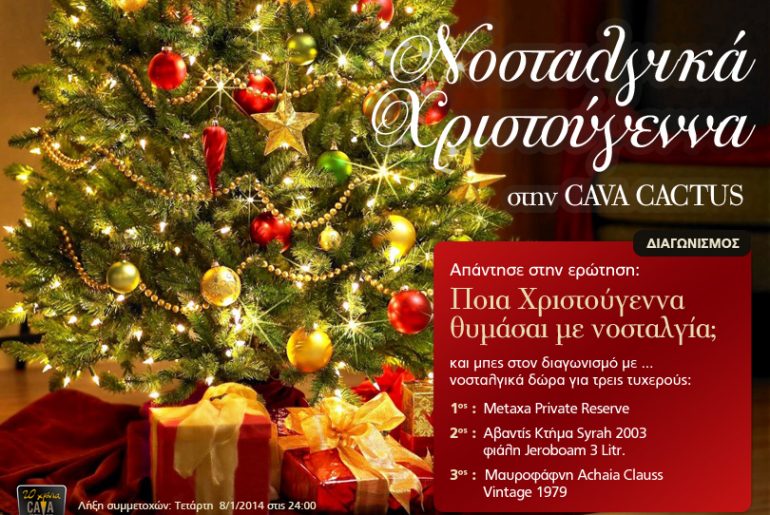 Η CAVA CACTUS διοργανώνει διαγωνισμό και σας δίνει τη δυνατότητα να κερδίσετε 3 ποτά… νοσταλγικά: 1 Metaxa Private Reserve, 1 Αβαντίς Κτήμα Syrah 2003 Jeroboam 3 Litr και 1 Μαυροδάφνη Achaia Clauss Vintage 1979.