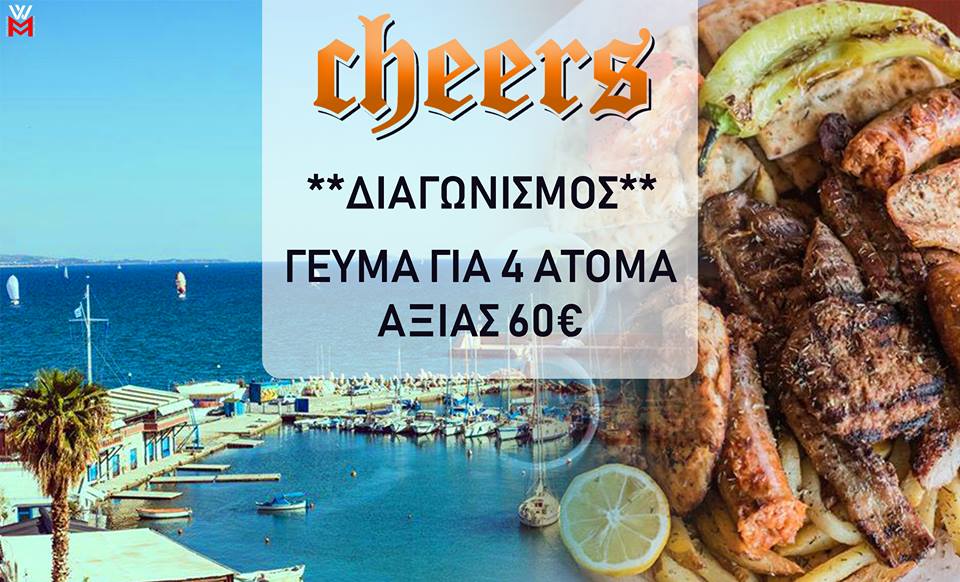 Το Cheers διοργανώνει διαγωνισμό και σας δίνει τη δυνατότητα να κερδίσετε ένα γεύμα για 4 άτομα, αξίας 60€, σε ένα ξεχωριστό χώρο με την μαγευτική θέα του Πειραιά!