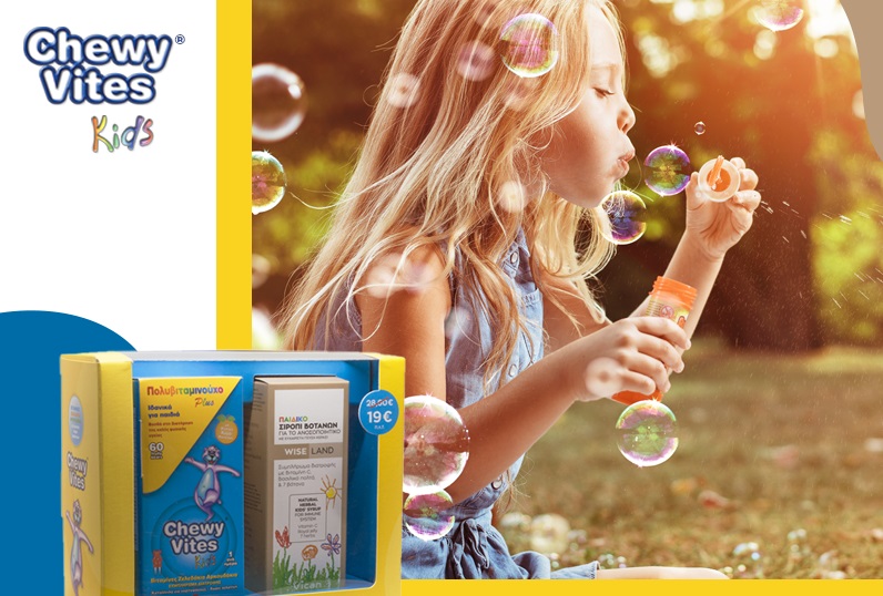 Το Chewy Vites διοργανώνει διαγωνισμό και δίνει τη δυνατότητα σε 3 τυχερούς να κερδίσουν από ένα gift pack που περιλαμβάνει ένα Chewy Vites Multivatin Plus και ένα Wise Land παιδικό σιρόπι βοτάνων!