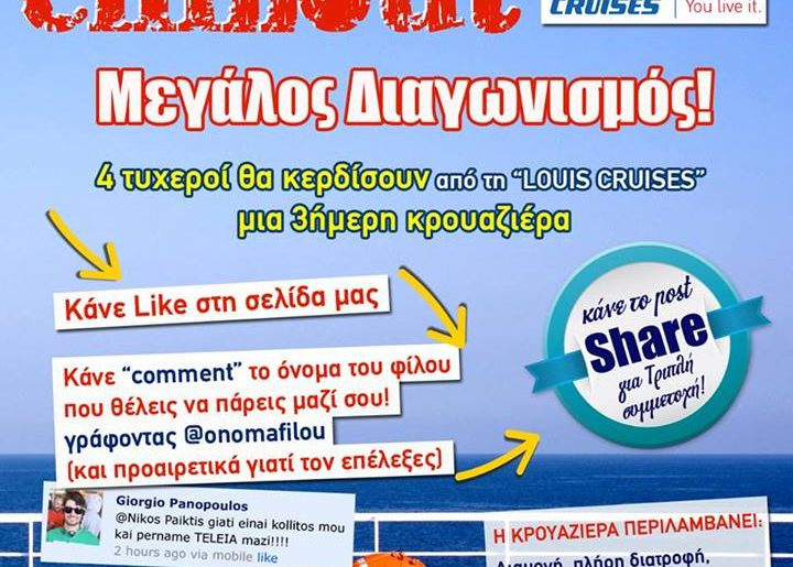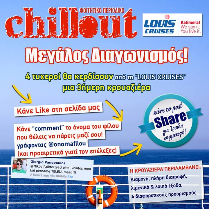 Το Chill Out διοργανώνει διαγωνισμό και δίνει τη δυνατότητα σε 4 τυχερούς να κερδίσουν 3ήμερη κρουαζιέρα από τη “LOUIS CRUISES”.
