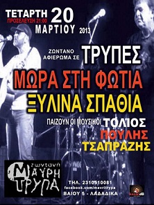 Το cityportal.gr σας προσφέρει 4 διπλές προσκλήσεις για να παρακολουθήσετε την Τετάρτη 20 Μαρτίου στη Ζωντανή Μαύρη Τρύπα το αφιέρωμα σε Τρύπες, Μωρά στη Φωτιά και Ξύλινα Σπαθιά.