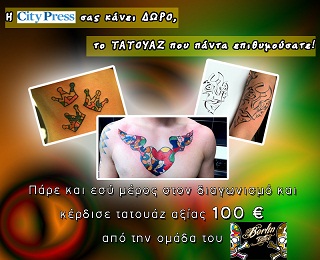 H citypress.gr διοργανώνει διαγωνισμό και στέλνει έναν τυχερό στο Berlin tattoo (berlintattoo.gr) για να κάνει το τατουάζ που πάντα ονειρευόταν.