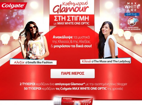 Η Colgate Greeceδιοργανώνει διαγωνισμό και δίνει τη δυνατότητα σε 2 τυχερές νικήτριες (αποκλειστικά γυναίκες) να κερδίσουν ένα απόγευμα glamour στο ξενοδοχείο Hilton στην Αθήνα. Επίσης, θα κερδίσουν τις οδοντόκρεμες MAX WHITE ONE Optic της χρονιάς (6 συσκευασίες). Στις συγκεκριμένες νικήτριες θα καλυφθούν και μέχρι 100€ έξοδα μετακίνησης, με την επίδειξη των σχετικών παραστατικών! 50 επίσης νικητές θα κερδίσουν τις οδοντόκρεμες MAX WHITE ONE Optic της χρονιάς (6 συσκευασίες).