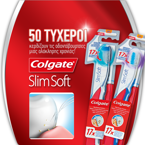 Η σελίδα Colgate Greece διοργανώνει διαγωνισμό και δίνει τη δυνατότητα σε 50 τυχερούς να κερδίσουν 4 οδοντόβουρτσες Colgate Slim Soft.