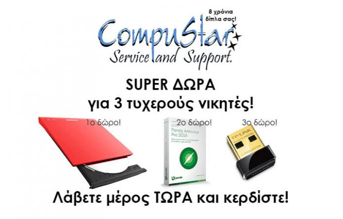 To CompuStar.gr γορτάζει τα 8 χρόνια του και διοργανώνει με τα παρακάτω δώρα:
