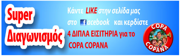 Κάντε LIKE στο page της ΑΡΙΩΝ, αφήστε σχόλιο στη φωτογραφία στο Tab SUPER ΔΙΑΓΩΝΙΣΜΟΣ και μπείτε στην κλήρωση για 4 διπλά εισιτήρια για το Copa Copana!