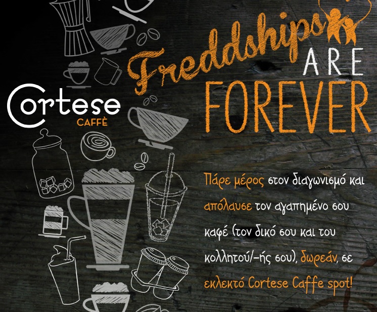 H σελίδα Cortese Caffe Espresso διοργανώνει διαγωνισμό και σας δίνει τη δυνατότητα να κερδίσετε, στο τέλος κάθε εβδομάδας, 10 κουπόνια (1 κουπόνι = 1 Cortese Caffe) προκειμένου να απολαύσετε τον αγαπημένο σας καφέ στα Cortese Caffe espresso Spots που συμμετέχουν στην ενέργεια, στη διάρκεια ενός μήνα από τη παραλαβή των κουπονιών!