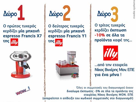 Το Cosmos 965 διοργανώνει διαγωνισμό και σας δίνει τη δυνατότητα να κερδίσετε 1 Μηχανή Espresso Francis X7 και 1 Μηχανή Espresso Francis Υ1.