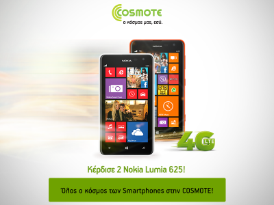 Η COSMOTE διοργανώνει διαγωνισμό και σας δίνει τη δυνατότητα να κερδίσετε 2 Νokia Lumia 625. (μόνο για συνδρομητές COSMOTE)