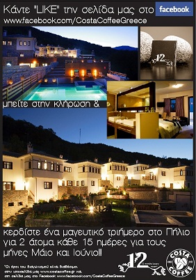 Διαγωνισμός COSTA COFFEE με δώρο ένα μαγευτικό τριήμερο για 2 άτομα στο 12 Months Luxury Resort στην Τσαγκαράδα Πηλίου