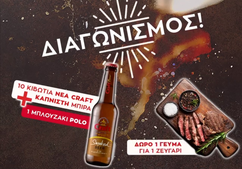 Η Craft Beer διοργανώνει διαγωνισμό δίνει τη δυνατότητα σε 10 τυχερούς να κερδίσουν από ένα κιβώτιο της νέας καπνιστής μπίρας Craft και ένα μπλουζάκι Polo! Ακόμη 1 τυχερό ζευγάρι θα κερδίσει ένα γεύμα, όπου θα απολαύσει την αγαπημένη του μπίρα!