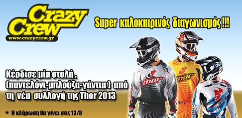 Το CrazyCrew.gr διοργανώνει διαγωνισμό και σας δίνει τη δυνατότητα να κερδίσετε μία στολή thor 2013 (περιλαμβάνει ένα παντελόνι, μία μπλούζα και ένα ζευγάρι γάντια), συνολικής αξίας 150,00 ευρώ.