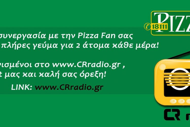Το CRradio.gr διοργανώνει διαγωνισμό και σας δίνει τη δυνατότητα να κερδίσετε 1 γεύμα από την Pizza Fan: 2 πίτσες των 8 τεμαχίων και ένα Choco KRATS ή μία Μπουγάτσα KRATS.
