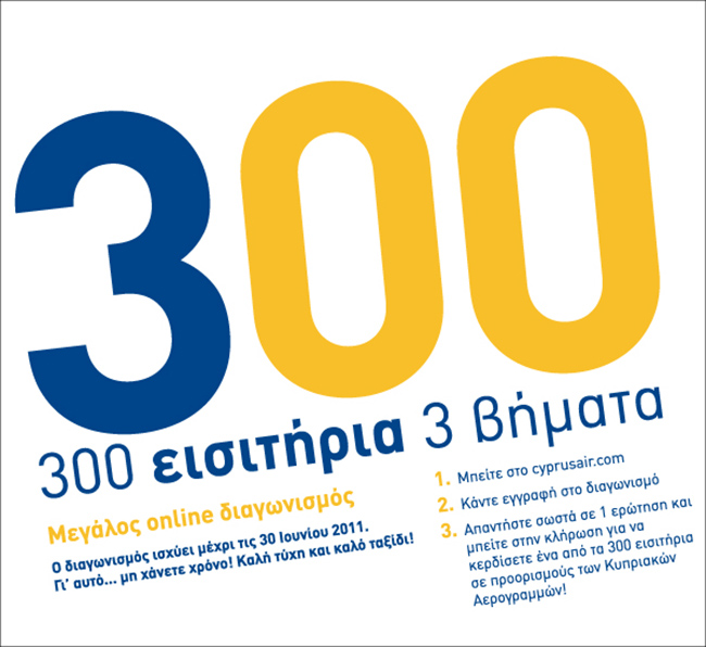 Διαγωνισμός Cyprus Airways με δώρο 300 δωρεάν αεροπορικά εισιτήρια