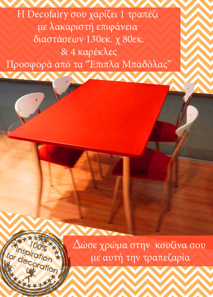 Η Decofairy σας χαρίζει μετά από κλήρωση, ένα τραπέζι κουζίνας με 4 καρέκλες, προσφορά από τα “Έπιπλα Μπαδόλας”.