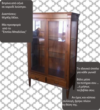 Το decofairy.gr διοργανώνει διαγωνισμό και σας δίνει τη δυνατότητα να κερδίσετε μία βιτρίνα διαστάσεων 90εκ.χ40εκ.χ180εκ. αξίας 600 ευρώ, προσφορά από τα “‘Επιπλα Μπαδόλας”.