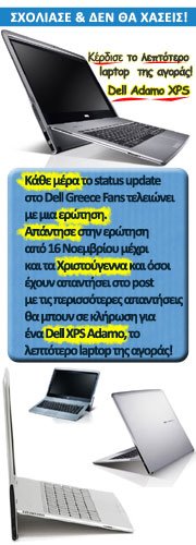 Το Dell Greece Fans διοργανώνει διαγωνισμό στο facebook και σας δίνει τη δυνατότητα να κερδίσετε ένα Dell Adamo XPS, το λεπτότερο laptop της αγοράς!